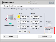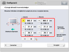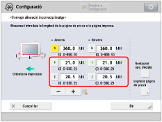 Torneu a la pantalla <Corregir alineació incorrecta imatge> → introduïu la longitud mesurada d'[i] i [j] per a l'anvers i el revers.