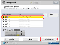 Seleccioneu un allotjament de paper que contingui una mida de paper personalitzada → premeu [Iniciar impressió].