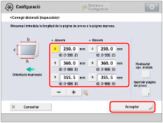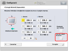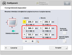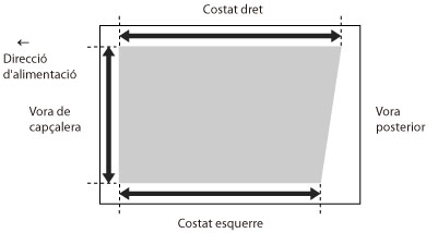 Introduïu la longitud mesurada de la vora de capçalera de la part esquerra de l'àrea d'impressió a la vora de capçalera de la part dreta de l'àrea d'impressió.