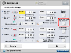 Amb aquesta funció es mesura la longitud del paper. La posició de la imatge de la segona cara s'ajusta tenint en compte la longitud del paper per coincidir amb la posició de la imatge de la primera cara. Tanmateix, establir en 'Off' aquesta funció pot permetre registrar amb més precisió alguns tipus de paper.