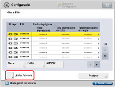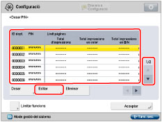 perquè aparegui el departament el PIN del qual voleu canviar → seleccioneu el departament → premeu [Editar].