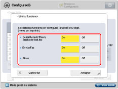 (límit de pàgines), al costat d'[On]/[Off] de les funcions que vulgueu.