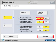 Podeu especificar si voleu acceptar treballs d'impressió de controladors d'impressió que no corresponguin a una ID de departament registrada i treballs de lectura en xarxa procedents d'ordinadors que no corresponguin a una ID de departament registrada.