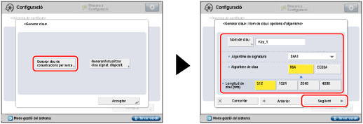 Després de prémer [Generar clau], no podeu utilitzar cap de les claus fins que no s'hagi generat i registrat un parell de claus.