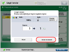Si s'ha activat el mode de visualització prèvia, podeu verificar les imatges des de la pantalla de visualització prèvia abans d'enviar el document. (Vegeu "Visualització prèvia".)