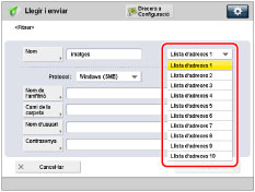 Si activeu [Canviar idioma/teclat Activat/Desactivat], és possible que el nom de l'amfitrió i el camí de la carpeta de la destinació del servidor de fitxers no apareguin correctament i que no pugueu examinar-los. (Vegeu "Activació del canvi d'idioma/teclat".)