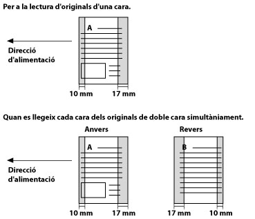Si les seccions en color estan ubicades únicament dins de l'interval que s'indica al diagrama següent, en carregar els originals a l'alimentador