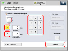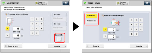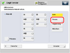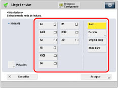 → [Llegir i enviar] → especifiqueu la destinació → premeu el botó de mida de lectura.