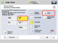 → [Llegir i enviar] → especifiqueu la destinació → premeu el botó Format de fitxer.