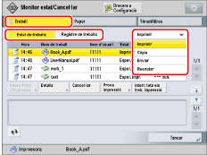 Premeu [Treball] → [Estat de treballs] o [Registre de treballs] → seleccioneu el tipus de treball a la llista desplegable.