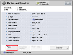 Per posar en pausa/reprendre el procés d'impressió del treball de còpia, seleccioneu [Imprimir]. Si seleccioneu [Còpia], els botons necessaris per a aquesta operació no apareixen.
