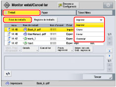 Si seleccioneu [Imprimir] o [Còpia] al tipus de treball, podeu establir [Imprimir còpia actual completament]. Aquest botó cancel·la el treball de còpia/impressió seleccionat un cop completat el conjunt actual de còpia/impressió.