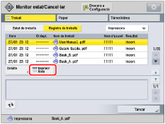 Per a més informació per imprimir llistes d'estat de treballs, vegeu "LLISTA DE TREBALLS D'ENVIAMENT".