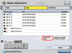 Per obtenir instruccions sobre com especificar [Opcions de paper], vegeu "Desament de la mida i el tipus de paper de l'origen de paper".