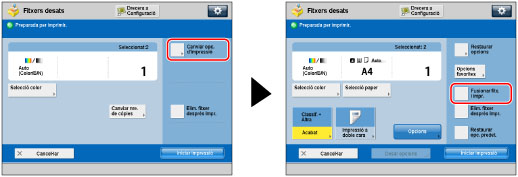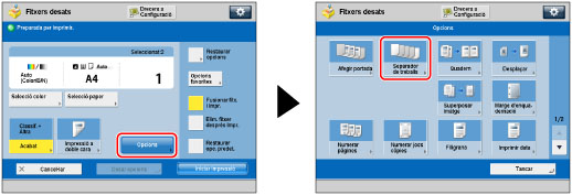 Si seleccioneu diversos fitxers i establiu el mode Fusionar fitx. i imprimir, podeu establir el mode Separador de treballs. (Vegeu "Fusió de fitxers en imprimir".)