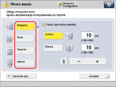 Si introduïu un valor diferent de 0, podeu canviar entre l'amplada d'enquadernació positiva i la negativa amb [±].