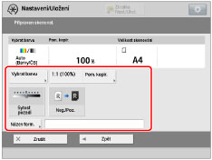 Vyberte velikost originálu, který obsahuje obrazový formulář → stiskněte [Další].