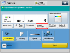 [Vzorek kopírování] se zobrazí, pouze když nastavíte vyhotovení více kopií originálu v [Třídit (Pořadí stran)], [Přesah], [Otočit o 90 stupňů], [Sešít], [Přidat přebal], [Vložit listy] nebo [Krycí listy transp. listů].