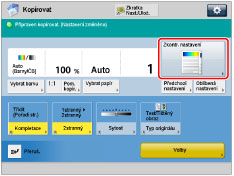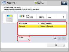 Trojúhelník ukazující vpravo (  ) zobrazený na tlačítku [Změnit] po výběru kopírovacího režimu naznačuje, že po stisknutí tohoto tlačítka je k dispozici více obrazovek pro nastavení.