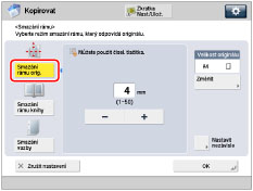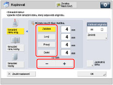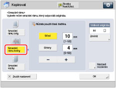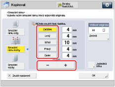 Zadejte polohu otvorů pro vazbu → stisknutím [-] nebo [+] nastavte příslušnou šířku pro smazání rámu.