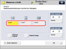 Tento režim umožňuje skenování několika originálů nebo oboustranných originálů na jeden list papíru. Na jednu stránku lze naskenovat 2, 4 nebo 8 originálů. Lze také nastavit oboustranný tisk a měnit rozvržení a pořadí obrazů.