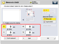 Označujete-li oblast pomocí editovacího pera, může se stát, že obraz na výstupu nebude přesně odpovídat označené oblasti. Chcete-li označit oblast přesně, zadejte hodnoty pomocí číselných tlačítek.