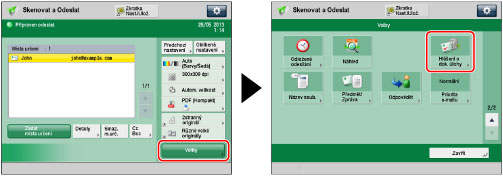 Zadejte místo určení → stiskněte [Volby] → [Hlášení o dok. úlohy].