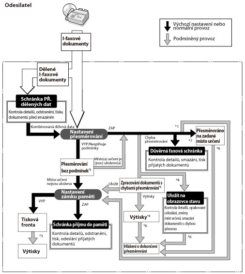 *1 Nastavíte-li <Uložit/Tisk. přijatý soubor> na Zap v [Nastavení přesměrování], přesměrované dokumenty se buď vytisknou, nebo uloží do schránky příjmu do paměti.
