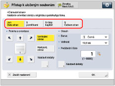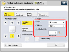 Použijete-li [Číslování stran] společně s volbou [Přidat přebal], [Vložit listy] nebo [Oddělovač úloh], čísla se na vložené stránky nevytisknou.