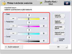 Jemná nastavení barev lze provést změnou relativní síly a sytosti žluté, purpurové, azurové a černé. Provedená nastavení barev lze uložit a následně vyvolat.