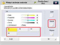 Vyberte tlačítko ([C1] to [C4]) pro uložení nastavení vyvážení barev → stiskněte [Uložit].