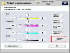 Vyberete-li tlačítko, pod nímž není uloženo nastavení vyvážení barev, tlačítko [OK] zešedne a nelze je použít. Můžete vybrat jiné tlačítko, pod nímž je uloženo nastavení vyvážení barev, nebo stisknout [Zrušit].