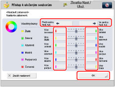 Nastavte úroveň zabarvení vybrané barvy nebo všech barev → stiskněte [OK].