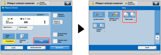 V režimu Tisk na tab. lze použít pouze originály velikosti A4.