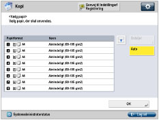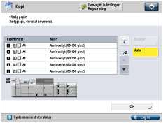 Viser illustrationer på listeskærmbilledet Vælg papir.