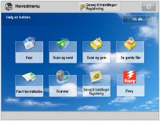 Hvis du trykker på [Vis alle] på hovedmenuen, vises alle knapper i standardrækkefølgen, også selvom du har ændret knappernes layout. Tryk igen på [Vis alle] for at returnere til det brugerdefinerede skærmbillede.