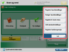 Registrering/redigering/sletning af knapper med favoritindstillinger for Scan og send