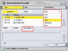 Der printes en liste med e-mail-, I-fax- og filserver- og mailboksoverførsler på sendejoblisten.