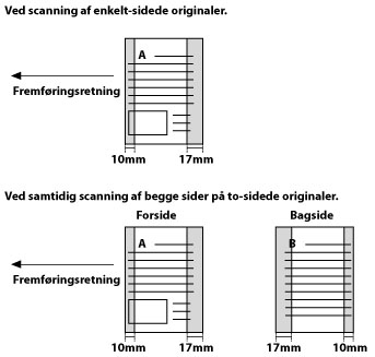Hvis farvesektionerne kun findes i områderne på originalerne som vist på de skyggelagte dele af illustrationerne herunder, når du lægger originalerne i fremføreren.