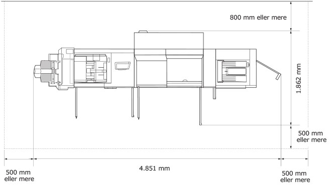 Sørg også for, at der er fri adgang til maskinen fra begge sider.
