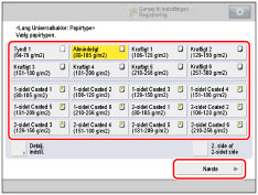 Du kan selv registrere papirtyper, som ikke vises under detaljerede indstillinger for Valg af papirtype. For informationer om registrering af brugerdefinerede papirtyper kan du se "Gem brugerdefinerede papirtyper"