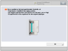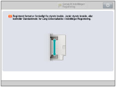 Hvis der på skærmen vises en meddelelse, der beder dig om at justere papirstyrene eller kontrollere [Standardindst. for Lang Universalbakke] i Indstillinger/Registrering, skal du justere bredden på papirstyrene, så de passer til det papirformat, der er gemt i [Standardindst. for Lang Universalbakke] eller indstille [Standardindst. for Lang Universalbakke] til 'Fra' i [Præferencer] (Indstillinger/Registrering). (Se "Registrering af standarder for Long Sheet Tray (bakke til lange ark)".)