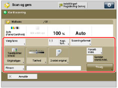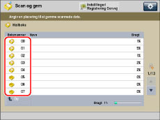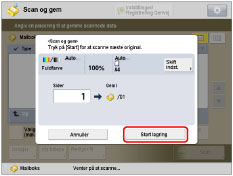 Du kan scanne og gemme op til 999 sider ad gangen. Scannes to-sidede originaler med fremføreren, kan du gemme op til 1000 sider. Når du det maksimale antal originaler, der kan scannes, får du en meddelelse om lagringen.
