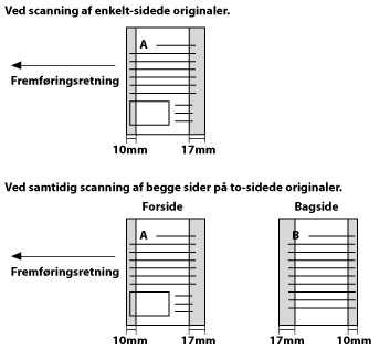Hvis farvesektionerne kun befinder sig inden for det område, som er angivet på diagrammet herunder, når originalerne indføres i fremføreren