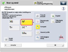 → [Scan og send] → angiv modtageren → tryk på filformat-knappen.