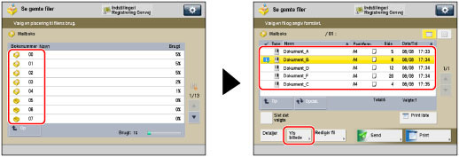 Vælg den ønskede mailboks → vælg den ønskede fil → tryk på [Vis billede].