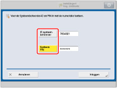 Als de Instellingen Systeembeheerder (ID-Systeembeheerder/Systeem PIN) zijn ingesteld