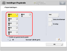 U kunt types papier registreren als er geen types papier worden weergegeven voor het geplaatste papier op de lijst met gedetailleerde instellingen. Voor instructies over het registreren van typen papier raadpleegt u "Overzicht van deze functie".
