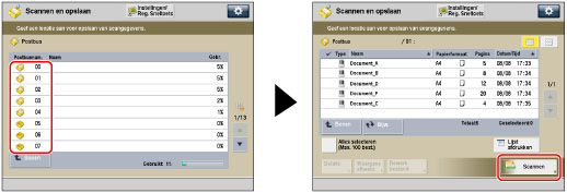 Als voorbeeld wordt in dit gedeelte de procedure voor het selecteren van postbus als opslaglocatie uitgelegd.
