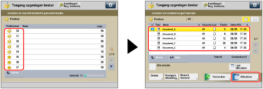 Selecteer het gewenste postvak → selecteer het gewenste bestand → druk op [Afdrukken].